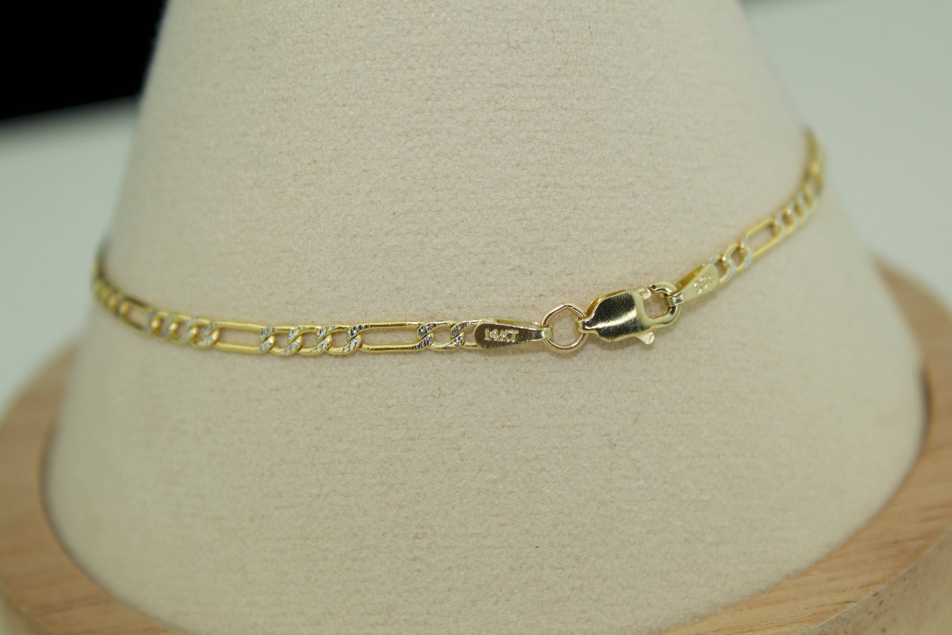 14K II Tone Diamond-Cut Figaro Bracelet – 2.2mm, 7.5"