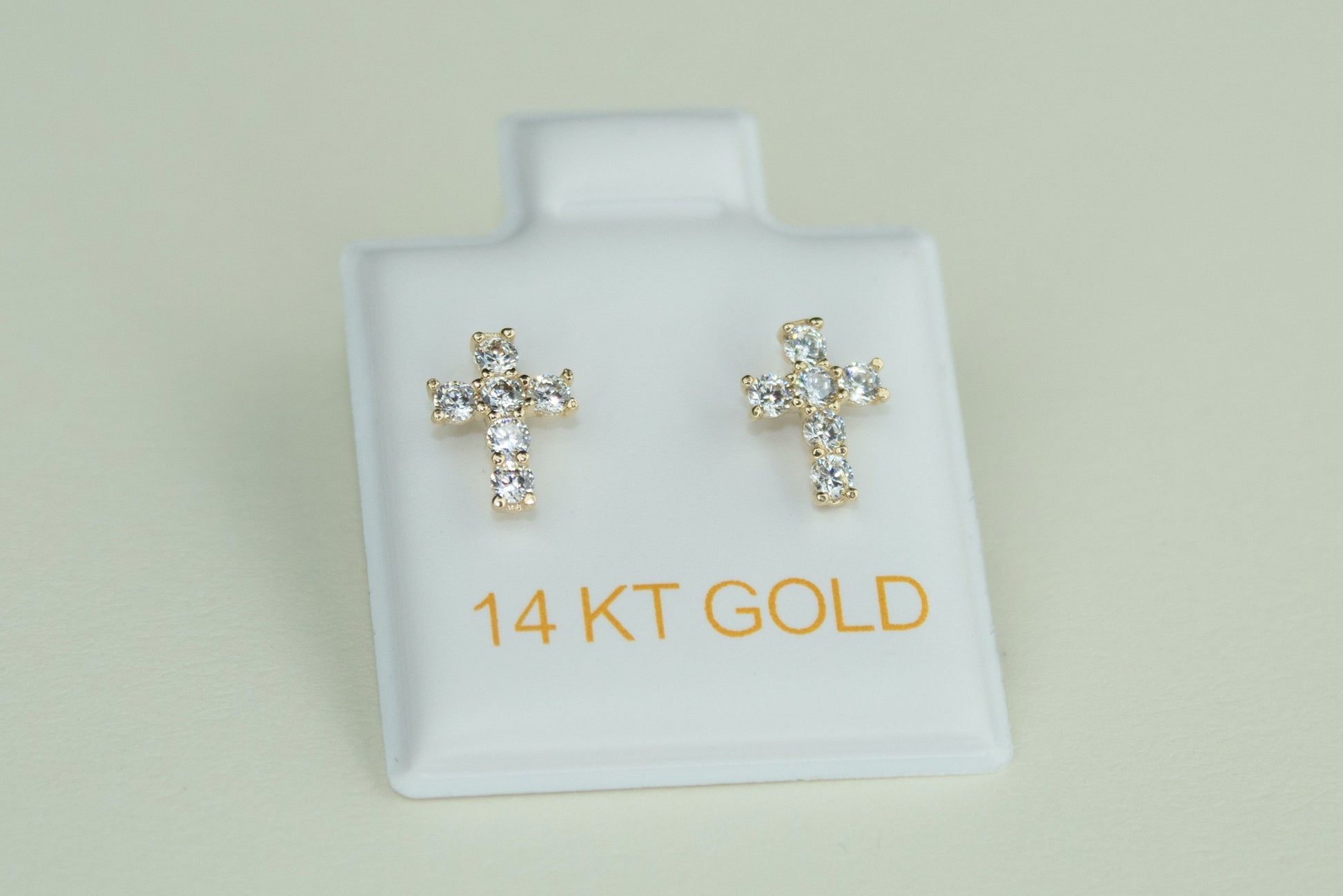 Delicate, dainty, and divine—these solid 14K gold mini cross studs are a timeless symbol of faith and style. Perfect for everyday wear or as a meaningful gift, each stud is accented with shimmering CZ stones for a clean, elegant look. Lightweight but made to last.