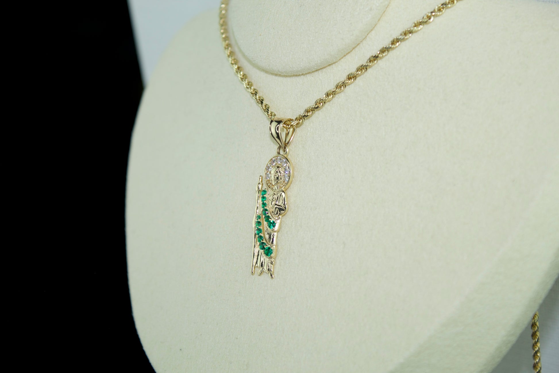 14k Gold San Judas Pendant – Emerald Accent Edition