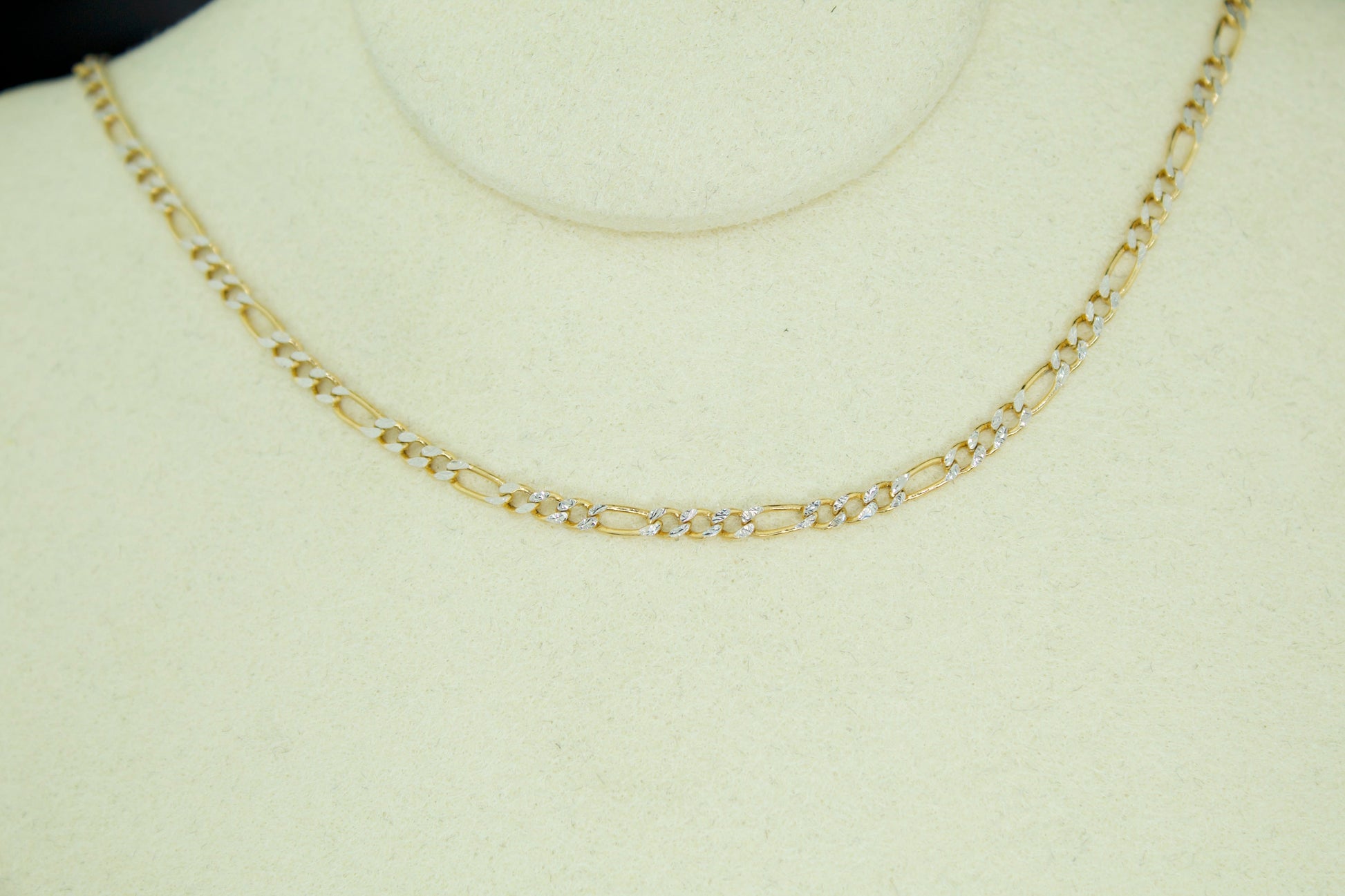 14K Two Tone Diamond Cut Figaro Chain | Semi Hollow | 22 Inch