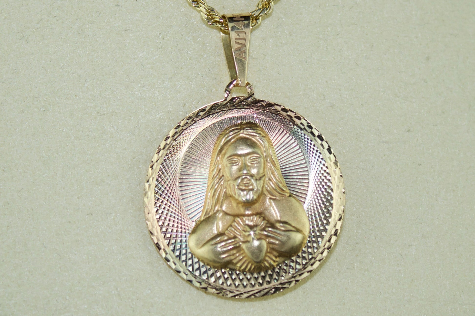 This high-end 14k Gold pendant features a fully solid, double-sided design — crafted for both spiritual meaning and lasting value. On one side, you’ll find a beautifully polished three-tone Virgen de Guadalupe , layered in yellow, white, and rose gold. On the reverse: a radiant Sacred Heart of Jesus in classic yellow gold. This pendant is not just visually stunning — it’s thick, heavy, and built solid , offering more gold weight and durability than most pieces in its category. With radiant etching, detailed relief work, and deep symbolism on both sides, it’s one of Oro Arcia’s finest statement pieces. Solid 14k gold — stamped and guaranteed Double-sided: Three-tone Virgen de Guadalupe / Yellow gold Sacred Heart Diamond-etched background with reflective detail Thick, heavy, and premium in weight and size Ships from California Limited availability — no restocks Please note: Price is for the pendant only. Chain not included. Have a question? Chat with us directly on the site.