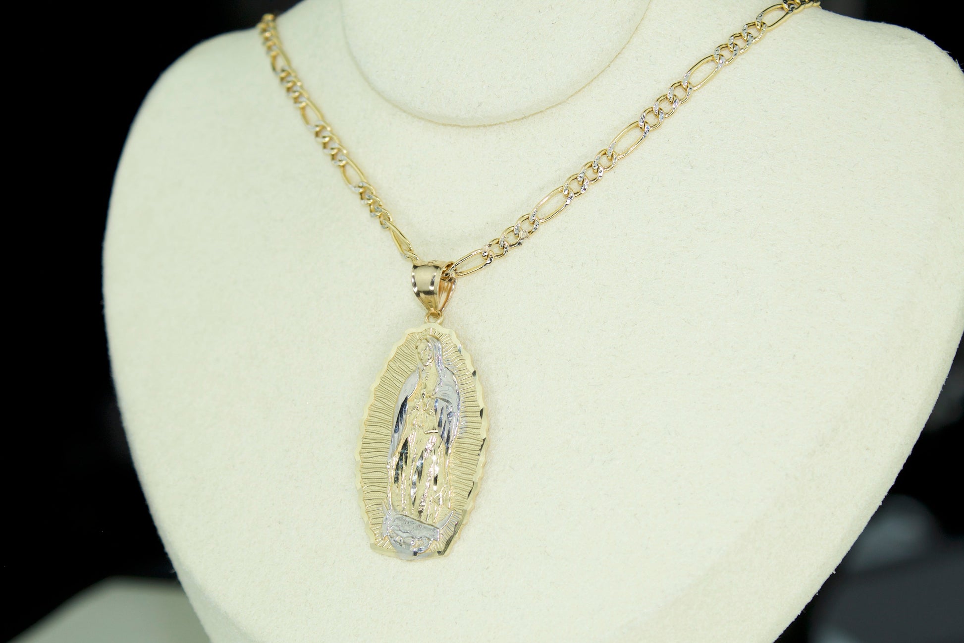 2 Tone Virgen De Guadalupe Pendant | 14K | Diamond Cut | Set Options Available