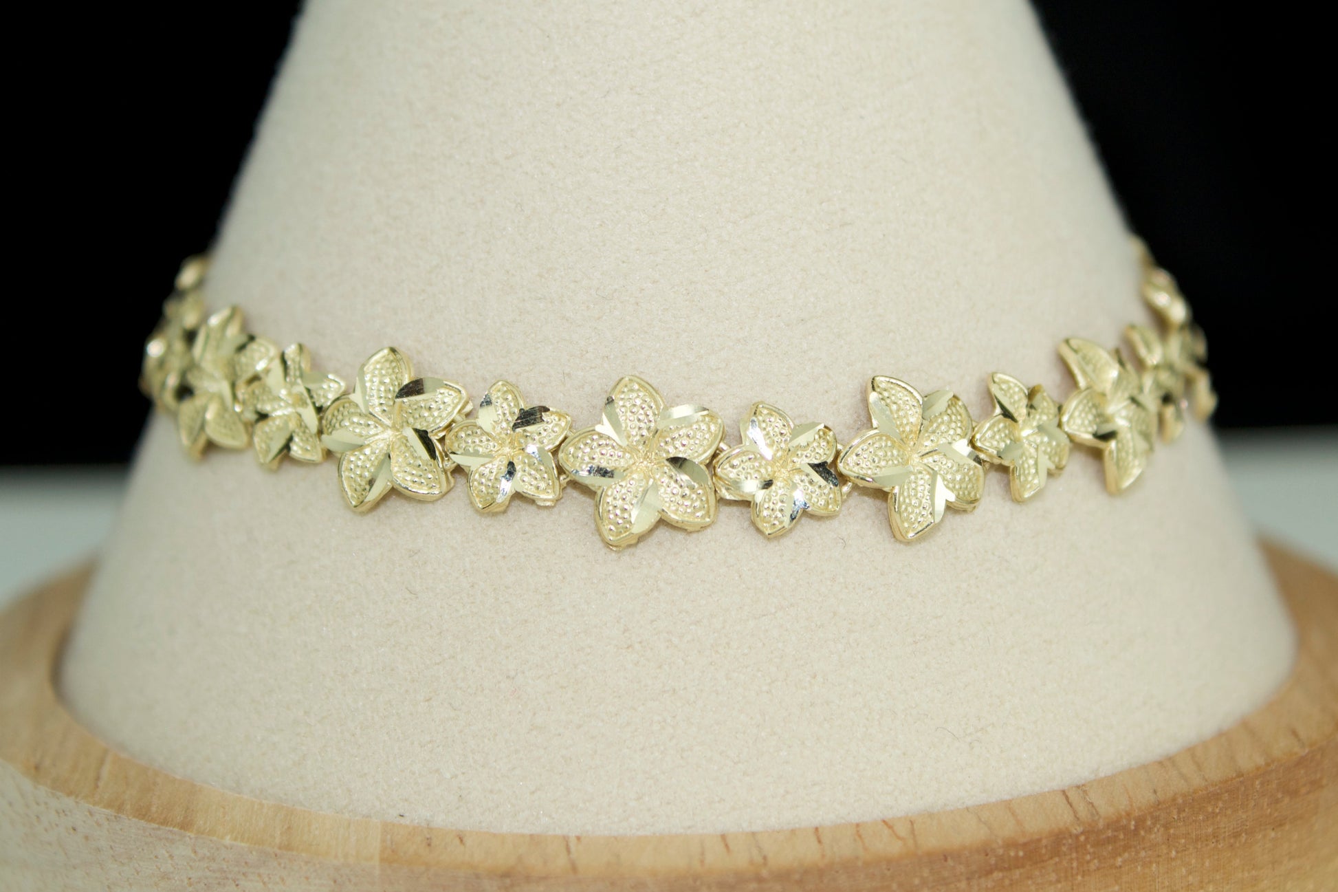 The Eternal Hibiscus Vice Versa Bracelet brings a playful twist to our signature floral design, alternating between petite and grande hibiscus links for a unique, dimensional look. Crafted in solid 14K gold, each flower is meticulously diamond-cut and textured to capture light from every angle. Measuring 7.5" in length and secured with a sturdy lobster clasp, this piece is perfect for collectors who want elegance with a distinctive edge.