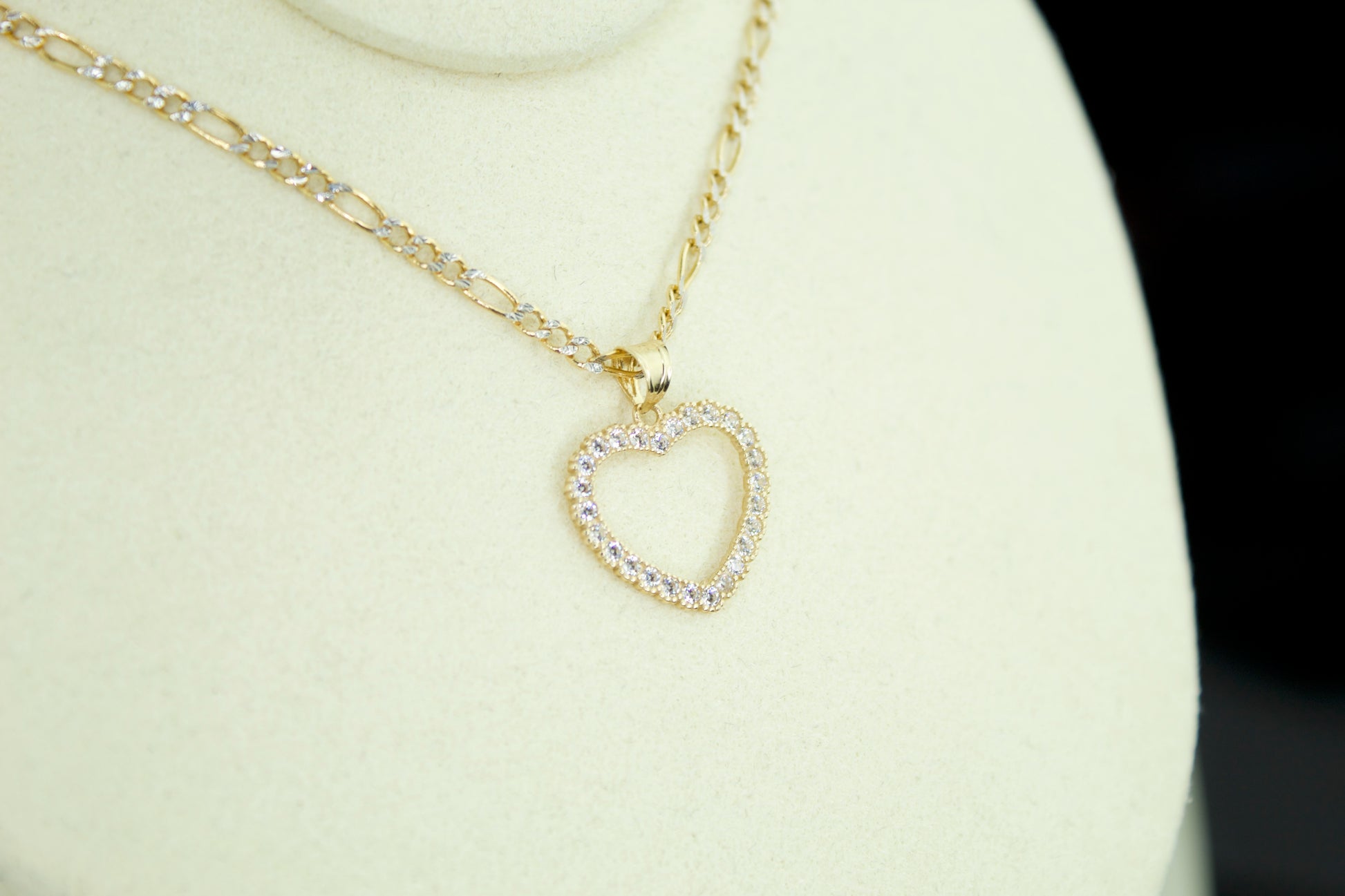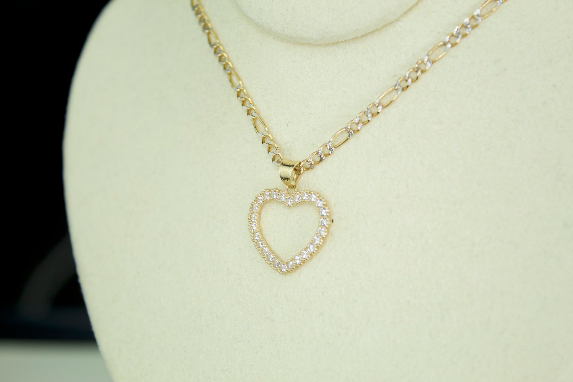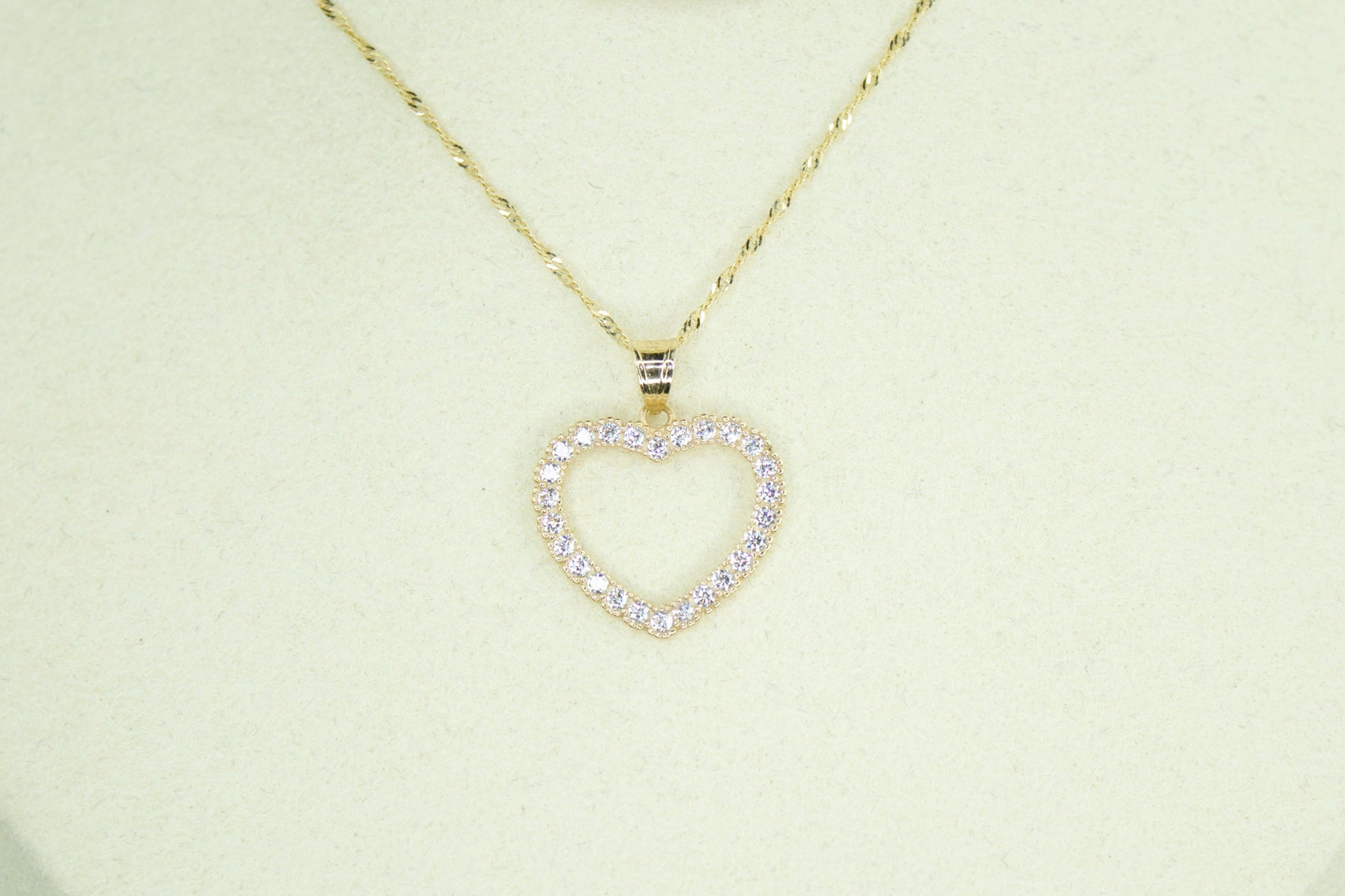 This Heart pendant is a timeless and elegant piece, crafted entirely in solid 14K and designed with clean lines and refined brilliance. The open heart silhouette is fully accented with hand set cubic zirconia stones, creating a bright, iced look without the use of diamonds.