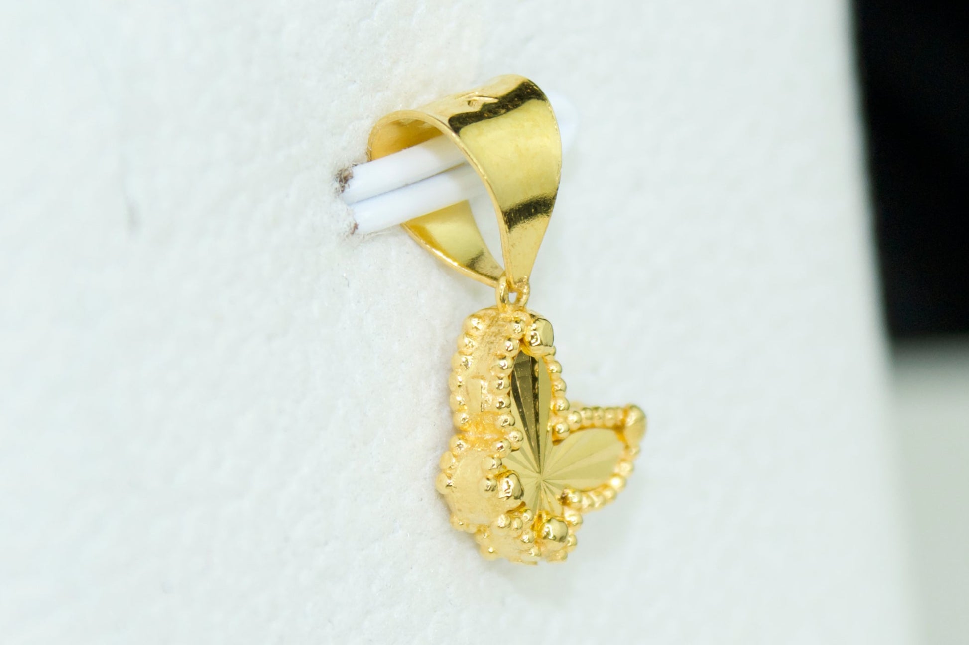 From our exclusive No.21 Collection, this pendant is handcrafted in solid 21K gold with a delicate butterfly silhouette. Featuring diamond-cut starburst detailing framed with bead-edge accents, it brings a touch of artistry and timeless elegance to your collection.