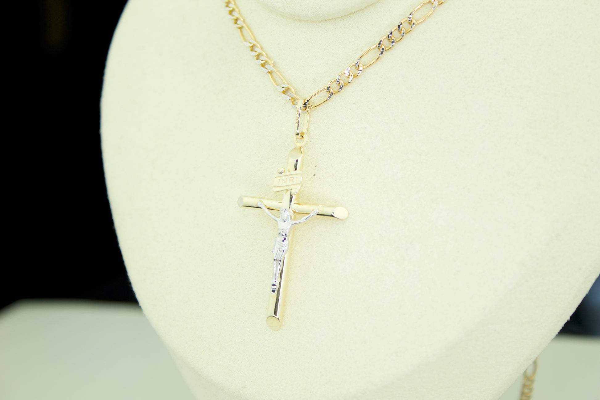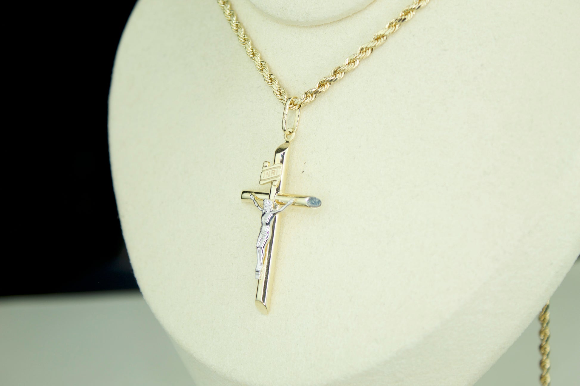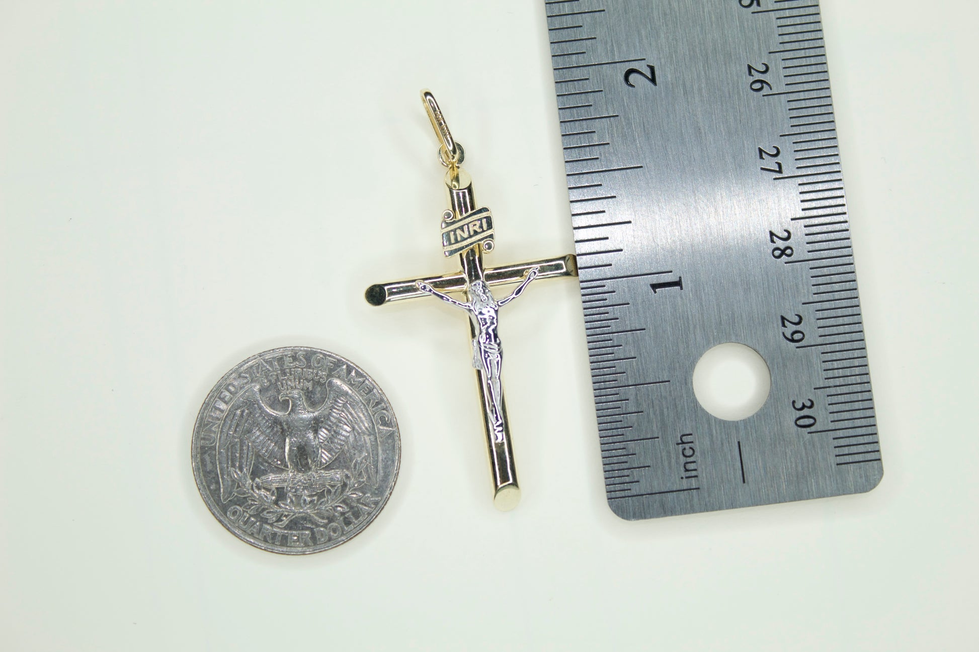 Tube Cross Pendant | 14K | Semi Hollow | Two Tone INRI Crucifix | Set Options Available